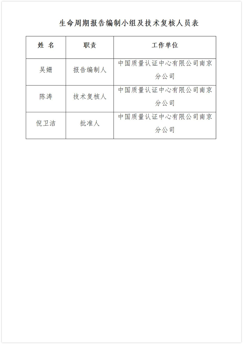 生命周期(碳足跡)報(bào)告